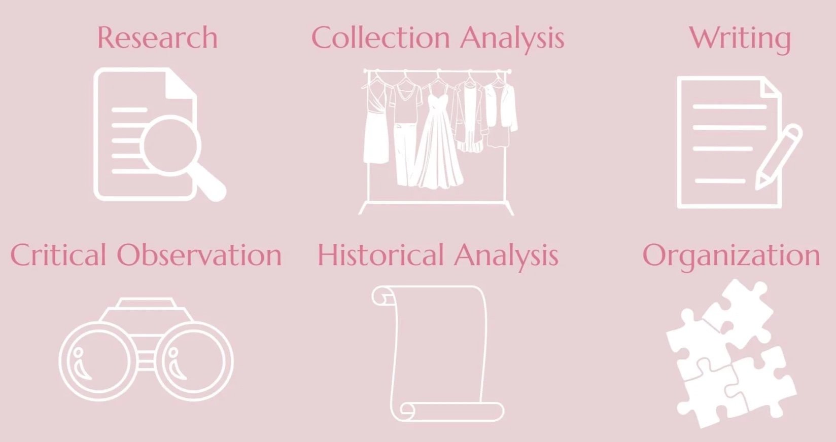 Next I examined silhouettes, fabrics, colors, textures, and accessories, identifying historical references, cultural influences, and innovative design techniques.